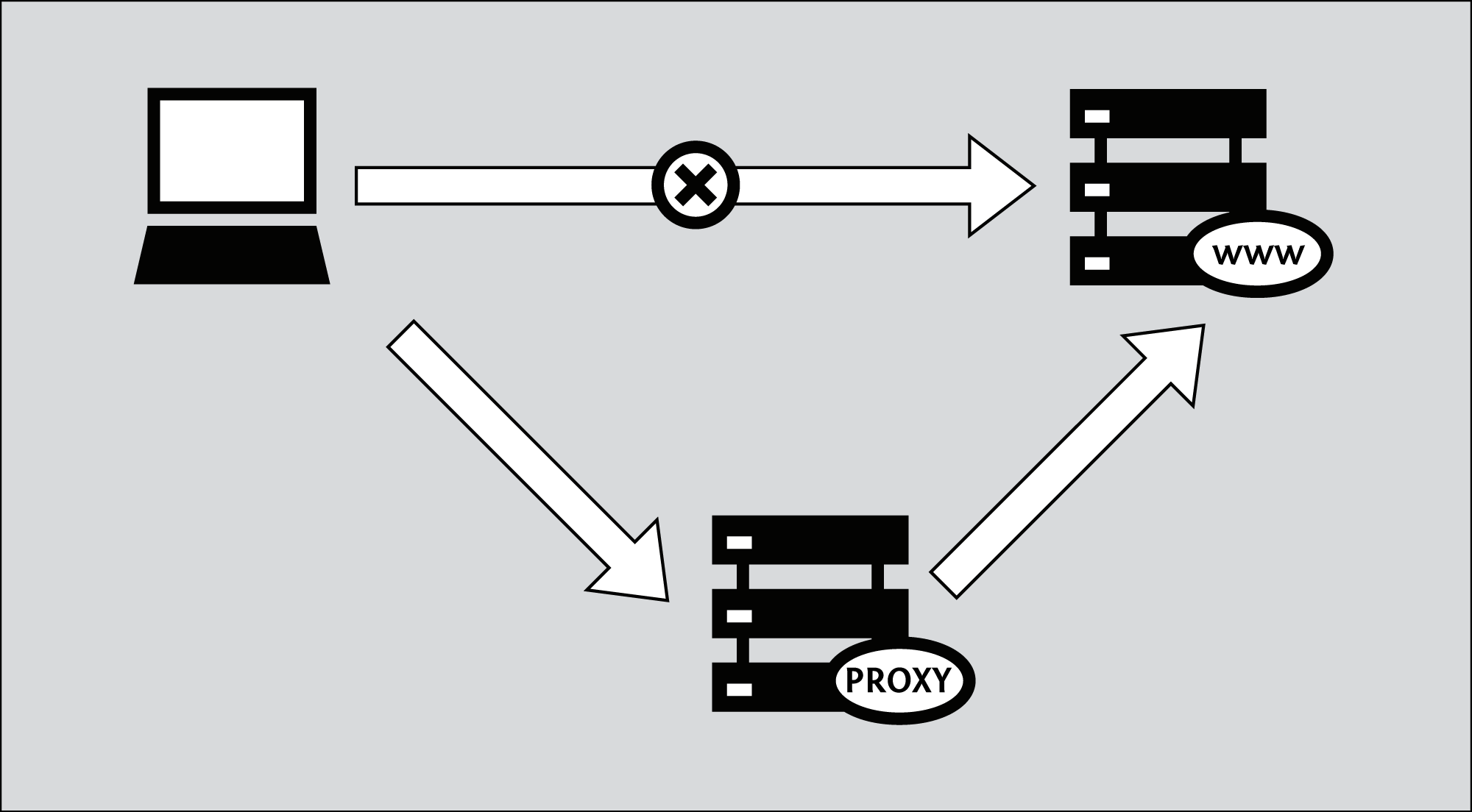 انرژی زیادی از سوی بنگاههای تجاری، غیرانتفاعی و گروهای داوطلب برای تهیه ابزارها و تکنیکهای گذر از سانسور اینترنت صرف میشود. بعضی از تکنیکها نیازی به نرمافزار خاص ندارد و فقط لازم است بدانیم کجا را برای همان اطلاعات جستجو کنیم. برنامهنویسها انواع مختلفی از ابزارها را تهیه کردهاند که انواع گوناگونی از گذر از فیلترینگ و بلوکه کردن را نشان میدهند. این ابزارها را رویهمرفته “ابزار دورزدن” می نامند، و می تواننید دارای گستره ای از روشهای ساده دورزدن سانسور گرفته، مسیرهای محافظت شده، گرفته تا برنامه های پیچیده رایانه ای می باشند. با وجود این آنها تقریبا همگی با یک روال کار می کنند. این برنامه مرورگر وب شما را از طریق راه فرعی به یک رایانه واسطه که آن را پراکسی می نامند هدایت کرده که: