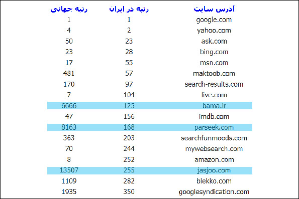 در نمودار ارائه شده توسط سرویس آنلاین تحلیلگر شاهد وجود موتورهای جستجوگر فارسی هستیم که باعث خوشحالی است اما این موتورهای جستجو در رتبههای پایین جدول قرار دارند.