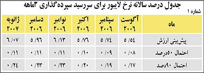 در جدول (شماره ۱) درصد سالانه این نرخ برای سررسید سه ماهه سپرده‌گذاری دلار آمریکا به نقل از این سایت آمده است. انجمن بانک‌های انگلیس (British Bankers Association) در گزارش ۲۶ ژوئن سال‌جاری میلادی نام بانک‌های بزرگ و بین‌المللی را به صورت گروه‌های مختلف اعلام کرده است. هر یک از این گروه‌ها نسبت به جذب سپرده یک ارز عمده در دوره‌های مختلف اقدام می‌کنند که در این گزارش به طور فهرست‌وار به اسامی آنها اشاره می‌شود.