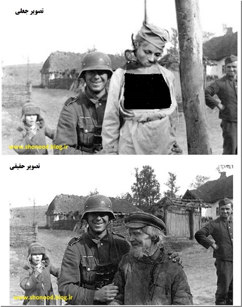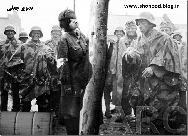 در تصویر جعلی : نیروهای بیرحم نازی یک پرستار امدادگر یهودی را به دار آویخته اند